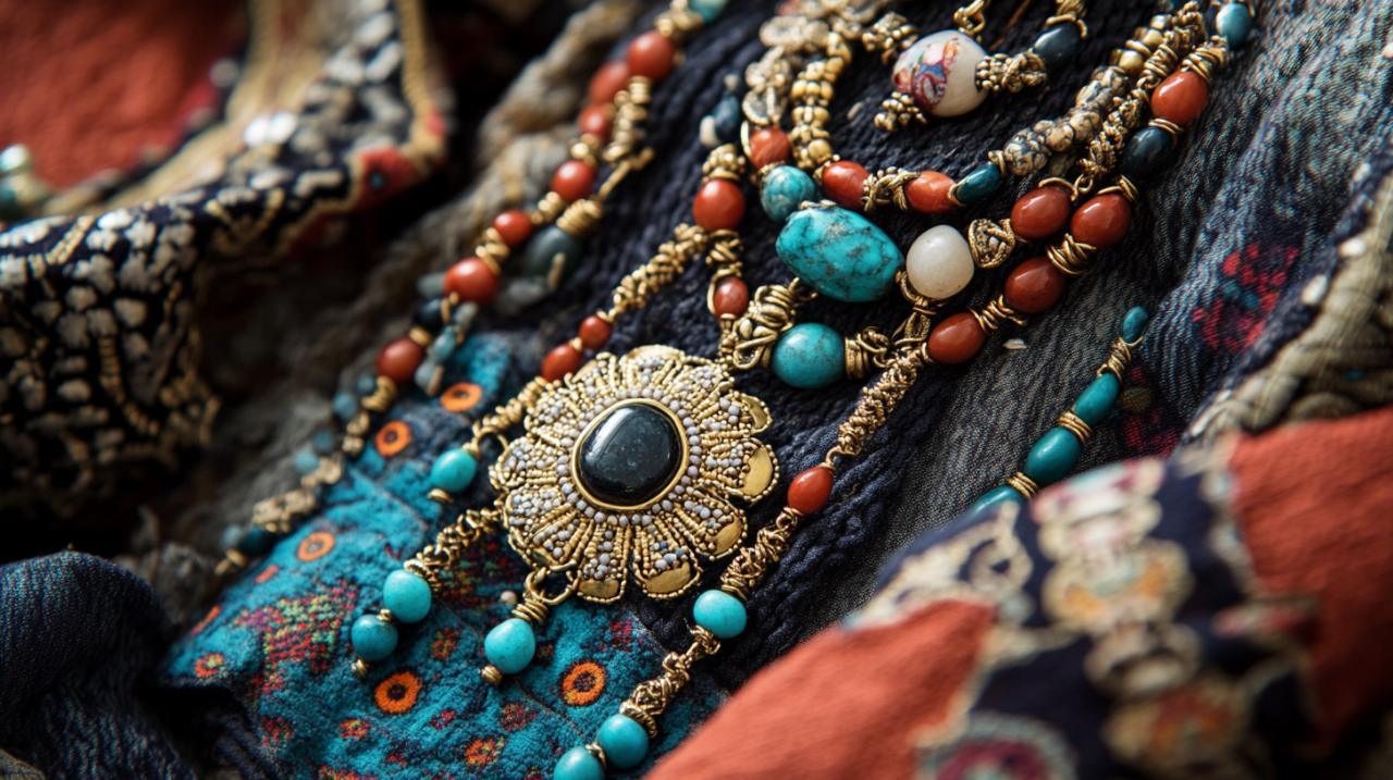 Les bijoux en pierre naturelle se déclinent sous différentes formes, des bracelets mala aux colliers bouddhistes en passant par les boucles d'oreilles ethniques. Les matériaux traditionnels comme l'argent, le cuivre, le laiton et le bois se marient harmonieusement avec les pierres pour créer des pièces uniques. Les prix reflètent cette diversité artisanale, avec des perles de santal disponibles dès deux euros et quatre-vingt-dix-neuf centimes et des bracelets tibétains en cuivre fait main à seize euros et quatre-vingt-dix-neuf centimes. Cette accessibilité permet à chacun de s'approprier un fragment de cette tradition ancestrale tout en bénéficiant d'un savoir-faire authentique transmis de génération en génération.